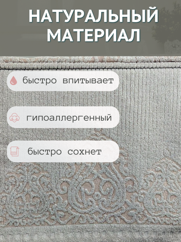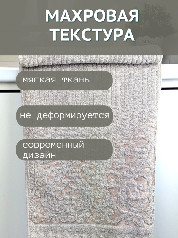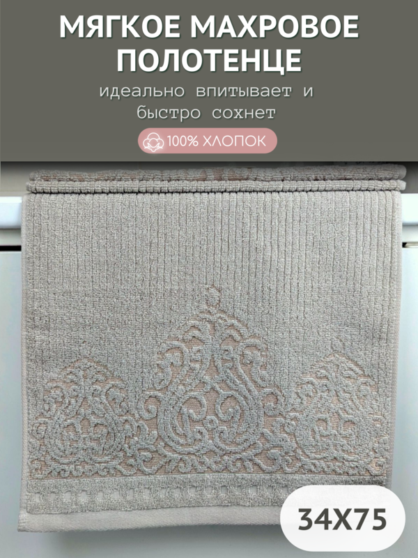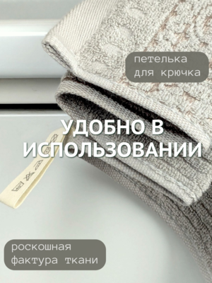 Махровое ручное полотенце с петелькой 34х75 является красивой с фактурными вензелями моделью натуральных хлопковых изделий бренда 7Я Атмосфера благополучия.