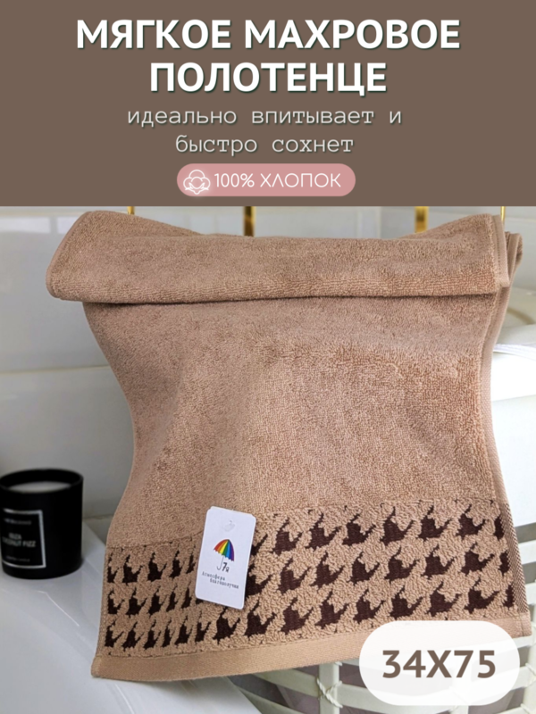Отзывы - 7Я текстиль Полотенце махровое для лица и рук 7Я Текстиль 34x75 "крупная гусиная лапка" 1504483-светло-коричневыйОставить отзыв