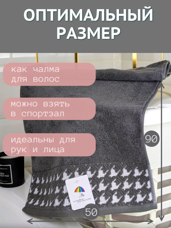 Небольшой размер полотенца для лица 50*90 хлопок удобно использовать как лицевое и ручное в ванной для умывания.