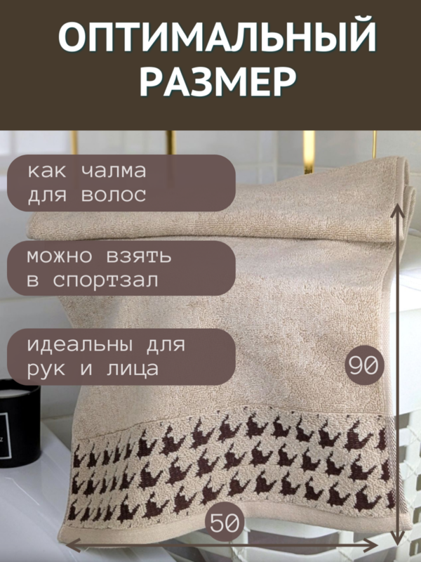 Махровое полотенце для рук и лица с петелькой с красивым классическим бордюром Гусиная лапка 50х90 является классической моделью натуральных хлопковых полотенец бренда 7я Атмосфера благополучия.