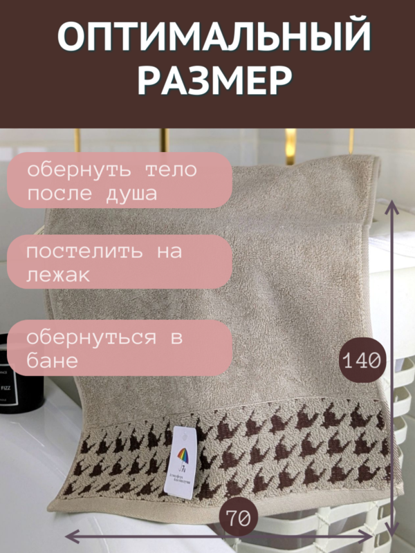 Махровое полотенце с петелькой для ванны с красивым классическим бордюром Гусиная лапка 70х140 является классической моделью натуральных хлопковых полотенец бренда 7Я Атмосфера благополучия.