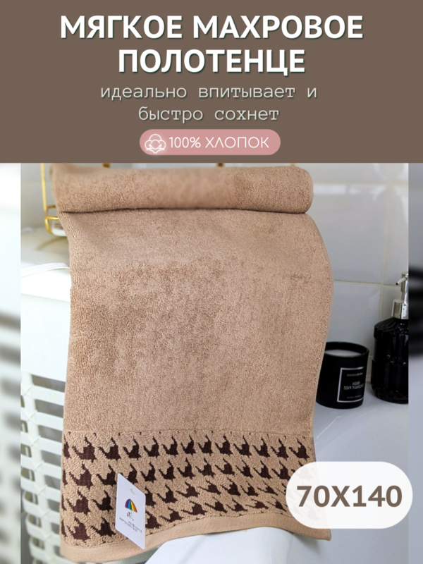 Махровое полотенце с петелькой для ванны с красивым классическим бордюром Гусиная лапка 70х140 является классической моделью натуральных хлопковых полотенец бренда 7Я Атмосфера благополучия.