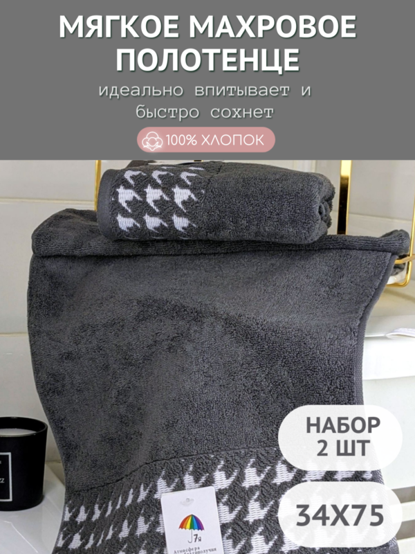 Отзывы - 7Я текстиль Набор полотенец из 2 шт 34х75 для рук и лица махровых крупная "крупная гусиная лапка" Н1504483-2шт-темно-серыйОставить отзыв