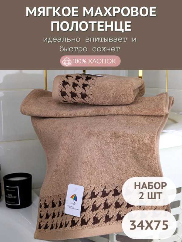 Отзывы - 7Я текстиль Набор полотенец из 2 шт 34х75 для рук и лица махровых крупная "крупная гусиная лапка" Н1504483-2шт-светло-коричневыйОставить отзыв