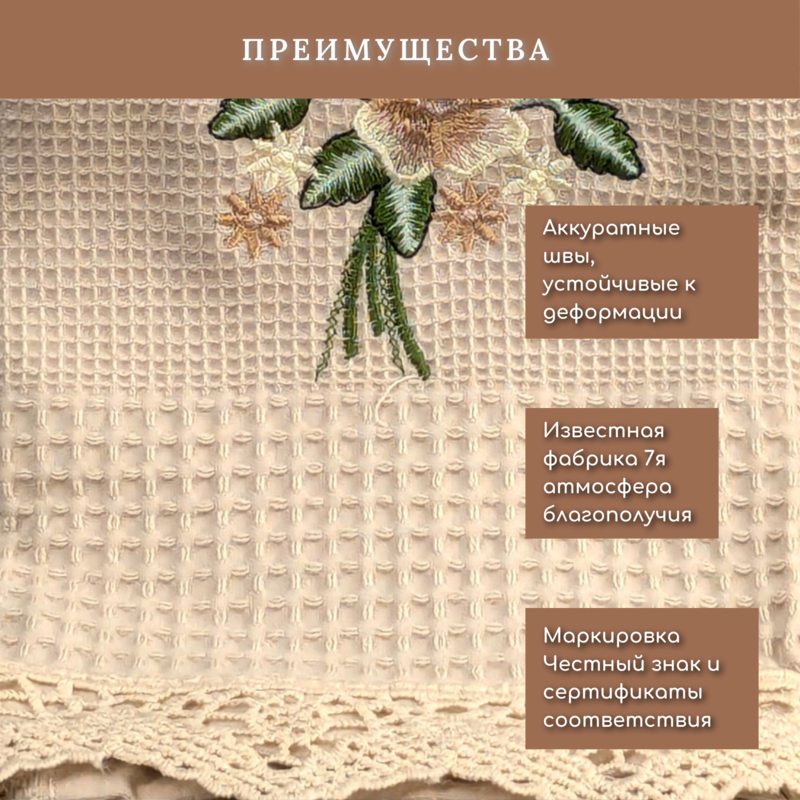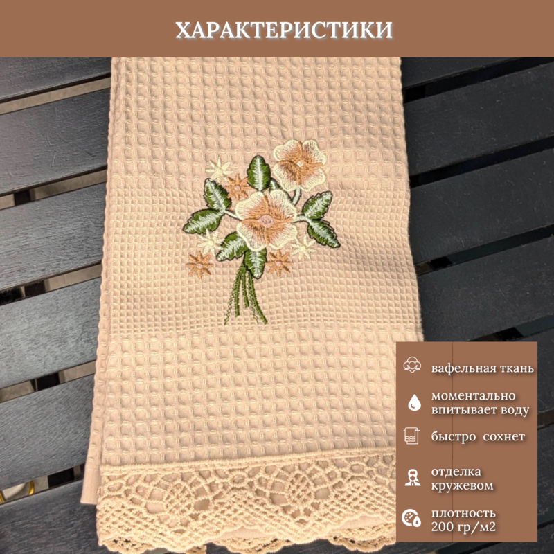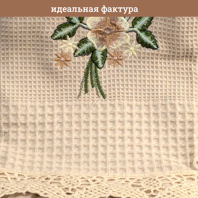 Отзывы - 7Я текстиль Полотенце вафельное для кухни с вышивкой и кружевом 40х60 100% хлопок 8511576-бежОставить отзыв