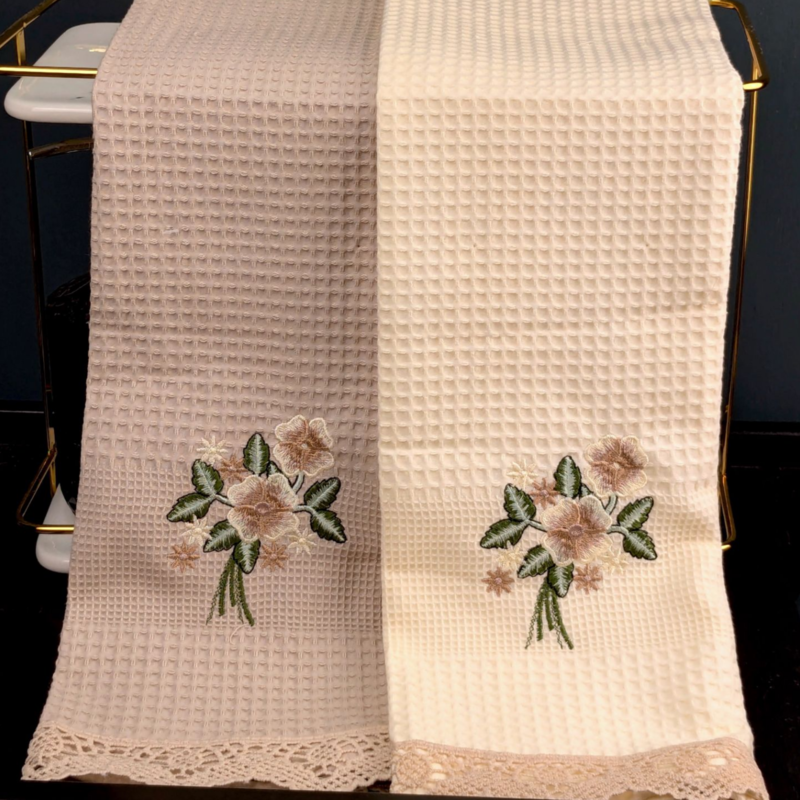 Модель новых вафельных полотенец от креативного бренда 7Я для тех кто любит легкие и быстросохнущие полотенца для кухни, и для рук. Нежная вышивка и хлопковое кружево придает изделию подарочный вид и оригинальность.
