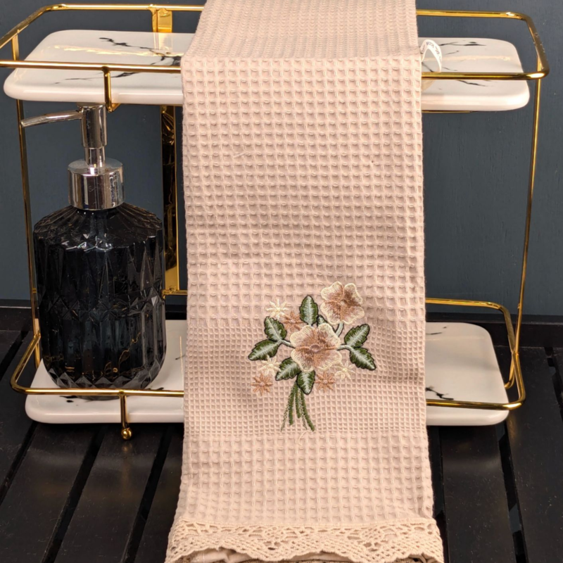 7Я текстиль Полотенце вафельное для кухни с вышивкой и кружевом 40х60 100% хлопок 8511576-беж
