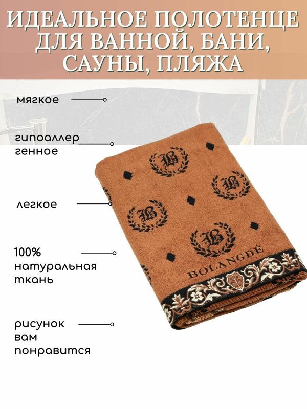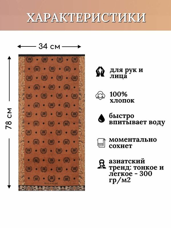 BOLANGDE Полотенце для рук и лица 1 шт, полотенце для ванной махровое, велюровое, 100% хлопок, Япония Лого 34х78, коричневый