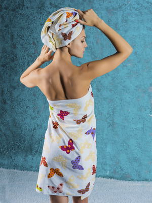 "Полотенце банное махровое BOLANGDE Бабочки 2038 - милейшая модель коллекции. Идеально использовать как детское полотенце, так и для взрослых. Уникальные махровые полотенца BOLANGDE от японской фабрики KUSUBASHI Mon-OriCo с запатентованным дизайном - с одной стороны и велюровые с другой. Технология производства такого полотенца подразумевает со стороны рисунка поверхностный обжиг огнем верхней кромки волокон для равномерной длины ворса и мягкости кончиков. Все дизайны и технологии запатентованы фабрикой. Это значит, что такой рисунок не могут использовать другие бренды, а вы покупаете неповторимую оригинальную вещь. Коллекция махрово-велюровых полотенец ЯПОНИЯ торговой марки Bolangde (Боландже) произведена на японском оборудовании из 100% высококачественного хлопка с применением особо стойких японских красителей и закрепителей цвета, что позволяет использовать в одном изделии множество ярких цветов. Внутренняя сторона - махровая. Внешняя сторона - стриженная махра. В коллекции с цветами принтованная только внешняя сторона, внутренняя - гладкий белый хлопок. При производстве используются все последние Японские технологии, только натуральный хлопок и безвредные красители 4го уровня безопасности. Материал полотенец произведен из высококачественного хлопка, который проходит несколько стадий обработки по удалению мелких волокон, что позволяет получить мягкий и нежный ворс. Японские технологии дали возможность совместить пестротканое плетение, велюр, усиленную обшивку (оверлок), что позволяет им не расползаться и сохранить прекрасный внешний вид. Подобная технология производства позволяет получить: - мягкие и комфортные к телу полотенца; - прочную ткань, которая выдерживает многочисленные стирки; - стойкий цвет; - полотенца хорошо впитывают воду и при этом быстро сохнут. Каждая модель есть в четырех размерах, чтобы каждый мог выбрать полотенца согласно своим привычкам: · полотенца большие банные есть в двух размерах 70х140 и 100х150, чем может похвастаться не каждый бренд. Удобно использовать для ванной, для сауны и бани, а также как пляжное. · полотенце для лица махровое 50х90 · полотенце для рук, для ног 34х78 в наборе 2 шт. · идеально выглядит набор полотенец. Обычно покупают одно из банных и лицевое, или банное и для рук. Уже более ста лет, фабрика KUSUBASHI обеспечивает потребности трех поколений императорского двора Японии. Это существенный повод доверять качеству данной фабрики. Полотенца Bolangde с цветочным рисунком - прекрасные подарки женщинам: бабушке, девушке, подарок маме, учителю, воспитателю."