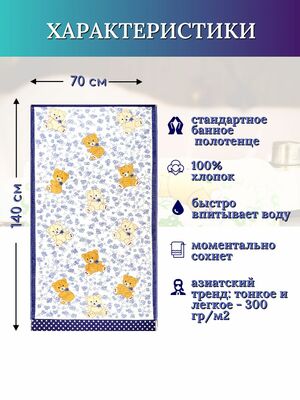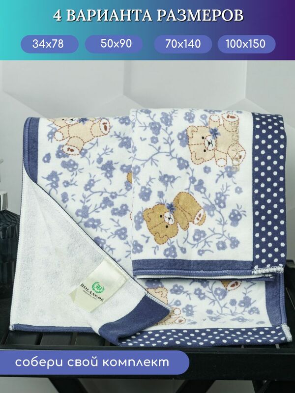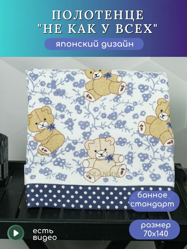 BOLANGDE Полотенце Япония баня МИШКИ СИНИЕ 70х140