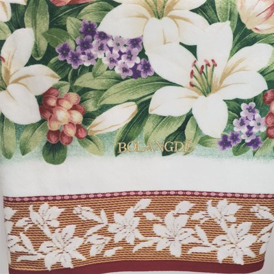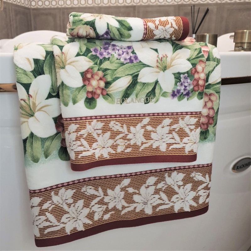 Полотенце BOLANGDE Япония Лилия 2019 - яркая и, как всегда, потрясающе красивая новинка от Bolangde. Уникальные полотенца BOLANGDE от японской фабрики KUSUBASHI с запатентованным дизайном. Это значит, что такой рисунок не могут использовать другие бренды, а вы покупаете неповторимую оригинальную вещь. Коллекция махрово-велюровых полотенец ЯПОНИЯ торговой марки Bolangde (Боландже) произведена на японском оборудовании из 100% высококачественного хлопка с применением особо стойких японских красителей и закрепителей цвета, что позволяет использовать в одном изделии множество ярких цветов. Произведено на японском оборудовании. Внутренняя сторона - махра. Внешняя сторона - стриженная махра. В коллекции с цветами принтованная только внешняя сторона, внутренняя - гладкий белый хлопок. При производстве используются все последние Японские технологии, только натуральный хлопок и безвредные красители 4го уровня безопасности. Материал полотенец произведен из высококачественного хлопка, который проходит несколько стадий обработки по удалению мелких волокон, что позволяет получить мягкий и нежный ворс. Японские технологии дали возможность совместить пестротканое плетение, велюр, усиленную обшивку (оверлок), что позволяет им не расползаться и сохранить прекрасный внешний вид.. Подобная технология производстсва позволяет получить: - мягкие и комфортные к телу полотенца, - прочную ткань, которая выдерживает многочисленные стирки - стойкий цвет. - полотенца хорошо впитывают воду и при этом быстро сохнут. Каждая модель есть в четырех размерах, чтобы каждый мог выбрать полотенца согласно своим привычкам. Уже более ста лет, фабрика KUSUBASHI обеспечивает потребности трех поколений императорского двора Японии. Это существенный повод доверять качеству данной фабрики.