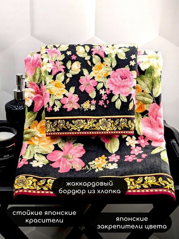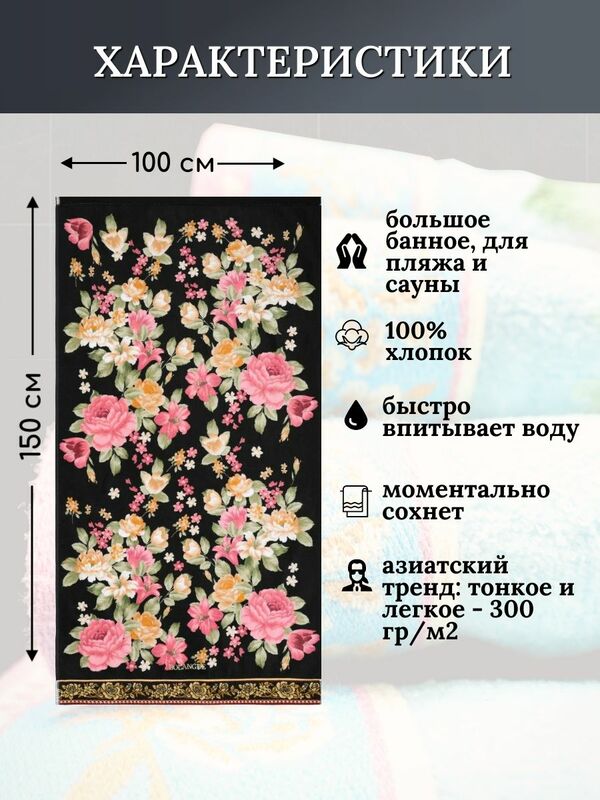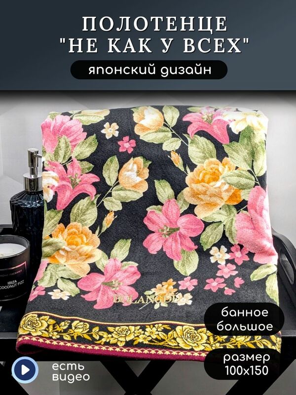 BOLANGDE Полотенце Япония Пионы 100х150 сауна черный