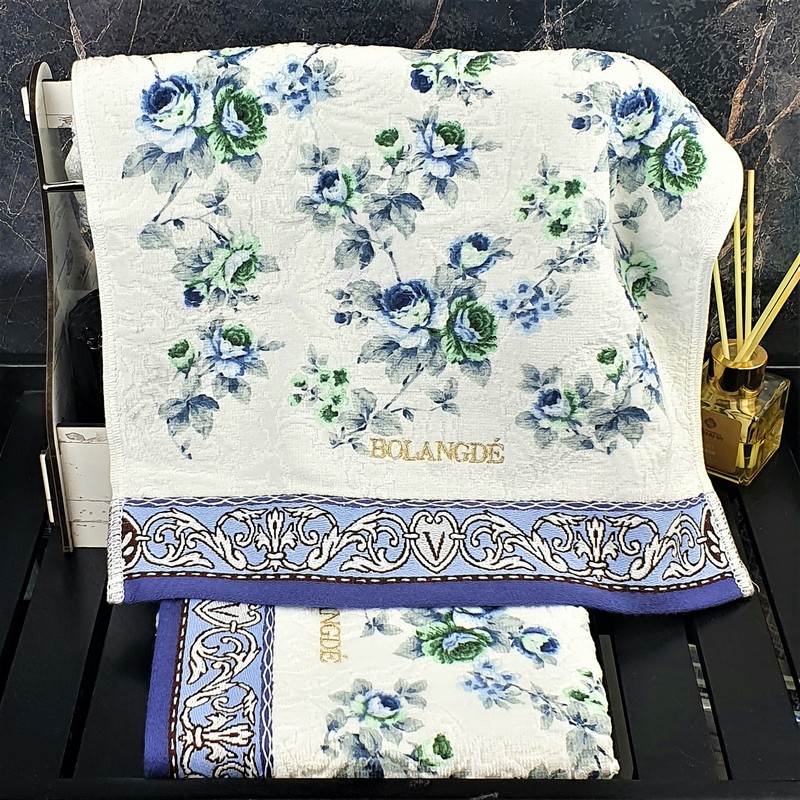Полотенце BOLANGDE Япония 2013 Чайная роза - самый классический принт бренда Bolangde, не теряющий популярность уже много лет. Уникальные полотенца BOLANGDE от японской фабрики KUSUBASHI с запатентованным дизайном. Это значит, что такой рисунок не могут использовать другие бренды, а вы покупаете неповторимую оригинальную вещь. Коллекция махрово-велюровых полотенец ЯПОНИЯ торговой марки Bolangde (Боландже) произведена на японском оборудовании из 100% высококачественного хлопка с применением особо стойких японских красителей и закрепителей цвета, что позволяет использовать в одном изделии множество ярких цветов. Произведено на японском оборудовании. Внутренняя сторона - махра. Внешняя сторона - стриженная махра. В коллекции с цветами принтованная только внешняя сторона, внутренняя - гладкий белый хлопок. При производстве используются все последние Японские технологии, только натуральный хлопок и безвредные красители 4го уровня безопасности. Материал полотенец произведен из высококачественного хлопка, который проходит несколько стадий обработки по удалению мелких волокон, что позволяет получить мягкий и нежный ворс. Японские технологии дали возможность совместить пестротканое плетение, велюр, усиленную обшивку (оверлок), что позволяет им не расползаться и сохранить прекрасный внешний вид.. Подобная технология производстсва позволяет получить: - мягкие и комфортные к телу полотенца, - прочную ткань, которая выдерживает многочисленные стирки - стойкий цвет. - полотенца хорошо впитывают воду и при этом быстро сохнут. Каждая модель есть в четырех размерах, чтобы каждый мог выбрать полотенца согласно своим привычкам. Уже более ста лет, фабрика KUSUBASHI обеспечивает потребности трех поколений императорского двора Японии. Это существенный повод доверять качеству данной фабрики.