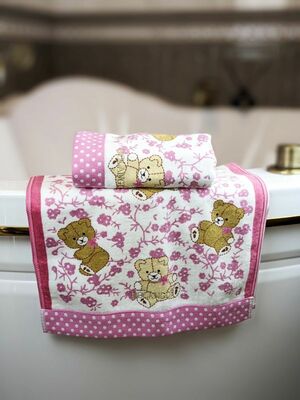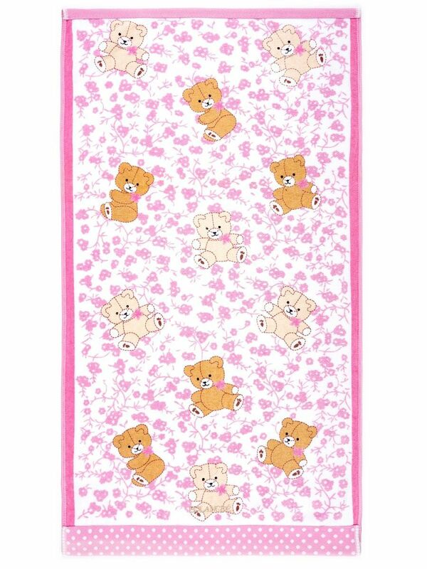BOLANGDE Полотенце для рук и лица 1 шт, полотенце для ванной махровое, велюровое, 100% хлопок, Япония Мишки 2078А-34х78, белый/розовый