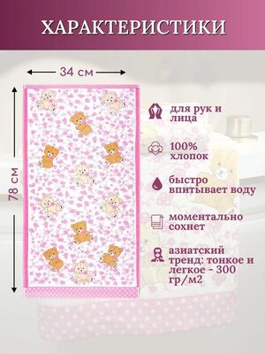 Отзывы - BOLANGDE Полотенце для рук и лица 1 шт, полотенце для ванной махровое, велюровое, 100% хлопок, Япония Мишки 2078А-34х78, белый/розовыйОставить отзыв