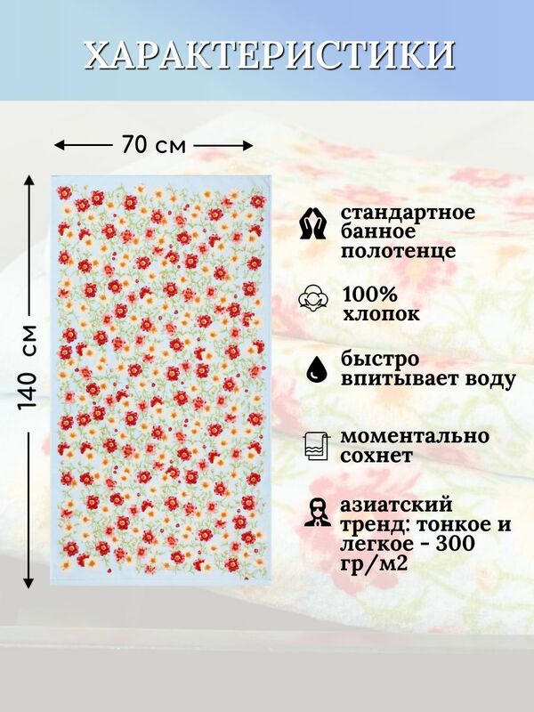 Полотенце BOLANGDE Япония 2020 Сакура - японское чудо цветет в вашей ванной, даря уют и комфорт. Уникальные полотенца BOLANGDE от японской фабрики KUSUBASHI с запатентованным дизайном. Это значит, что такой рисунок не могут использовать другие бренды, а вы покупаете неповторимую оригинальную вещь. Коллекция махрово-велюровых полотенец ЯПОНИЯ торговой марки Bolangde (Боландже) произведена на японском оборудовании из 100% высококачественного хлопка с применением особо стойких японских красителей и закрепителей цвета, что позволяет использовать в одном изделии множество ярких цветов. Произведено на японском оборудовании. Внутренняя сторона - махра. Внешняя сторона - стриженная махра. В коллекции с цветами принтованная только внешняя сторона, внутренняя - гладкий белый хлопок. При производстве используются все последние Японские технологии, только натуральный хлопок и безвредные красители 4го уровня безопасности. Материал полотенец произведен из высококачественного хлопка, который проходит несколько стадий обработки по удалению мелких волокон, что позволяет получить мягкий и нежный ворс. Японские технологии дали возможность совместить пестротканое плетение, велюр, усиленную обшивку (оверлок), что позволяет им не расползаться и сохранить прекрасный внешний вид.. Подобная технология производстсва позволяет получить: - мягкие и комфортные к телу полотенца, - прочную ткань, которая выдерживает многочисленные стирки - стойкий цвет. - полотенца хорошо впитывают воду и при этом быстро сохнут. Каждая модель есть в четырех размерах, чтобы каждый мог выбрать полотенца согласно своим привычкам. Уже более ста лет, фабрика KUSUBASHI обеспечивает потребности трех поколений императорского двора Японии. Это существенный повод доверять качеству данной фабрики. "