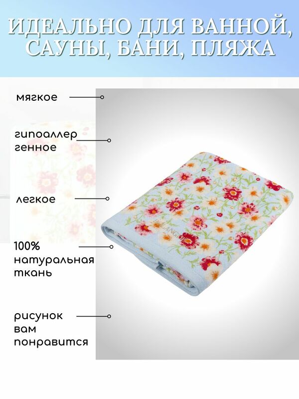 BOLANGDE Полотенце Япония Сакура 70х140 банное голубой