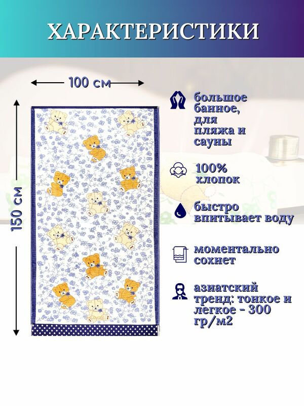 Отзывы - BOLANGDE Полотенце Япония сауна МИШКИ СИНИЕ (100х150) Оставить отзыв