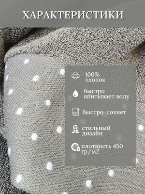 Классические махровые однотонные полотенца для ванной, украшенные хлопковым бордюром в горошек. Произведены из длиннопетлевой махровой ткани, состав 100% хлопок. Хлопковая нитка прошла специальную обработку для смягчения, поэтому полотенце очень мягкое и приятное наощупь. Благодаря натуральному составу быстро впитывает воду и также быстро высыхает. Модель представлена в трех размерах: - полотенце для рук размер 35х75, можно использовать и для кухни. - полотенце для лица размер 50х90, удобно заворачивать волосы - полотенце банное размер 70х140, идеально для спорта и пляжа. Фабрика 7Я производит полотенца с применением современных гипоаллергенных стойких красителей и закрепителей цвета, благодаря чему полотенца сохраняют цвет после многочисленных стирок. Основные Характеристики: >Основная ткань - смягченный по специальной технологии (100% хлопок) махра. >Быстро впитывают. >Быстро сохнут >Гипоаллергенный материал >Мягкие и приятные к телу >Имеет петельку для крючка в ванной Наш магазин работает с фабрикой 7Я текстиль уже более 8 лет. Обрел преданных покупателей, которые с удовольствием покупают полотенца и себе , и для подарков друзьям и близким. Это существенный повод доверять качеству данной фабрики