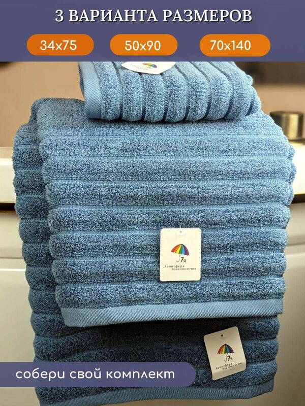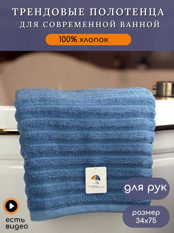 Полотенце махровое для рук выполнено в самом модном стиле - фактурная махровая полоса. Полотенце для рук без лишних деталей идеально подойдет для ванной в современном стиле. Пышный ворс очень мягкий к телу и быстро впитывает воду. Полотенца для рук и лица 7Я текстиль произведены из длиннопетлевой махровой ткани, состав 100% хлопок. Хлопковая нитка прошла специальную обработку для смягчения, поэтому полотенце очень мягкое и приятное наощупь. Благодаря натуральному составу быстро впитывает воду и также быстро высыхает. Модель представлена в трех размерах и двух вариантах наборов полотенец для ванной:- полотенца махровые набор для рук размер 35х75 2 шт, можно использовать как для рук, так и для лица, так и для кухни- полотенце для лица размер 50х90, удобно заворачивать волосы- полотенце банное размер 70х140, идеально для спорта и пляжа.- а также мы собрали для вас удобный набор банных полотенец махровых 50х90 и 70х140.- набор полотенец для ванной 34х75, 50х90 и 70х140.Фабрика 7Я производит банные полотенца с применением современных гипоаллергенных стойких красителей и закрепителей цвета, благодаря чему полотенца сохраняют цвет после многочисленных стирок.Основные Характеристики: