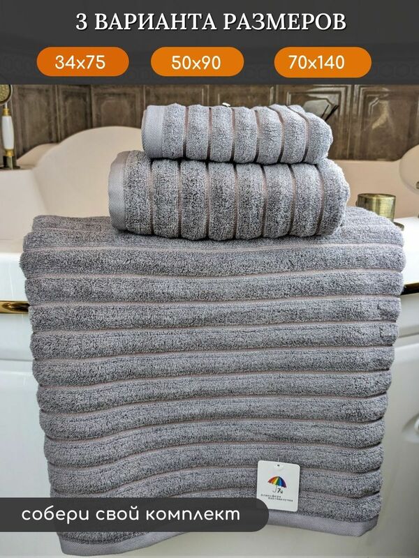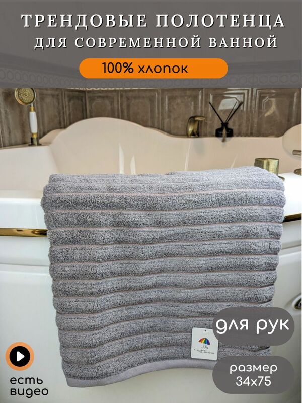 Полотенце махровое для рук выполнено в самом модном стиле - фактурная махровая полоса. Полотенце для рук без лишних деталей идеально подойдет для ванной в современном стиле. Пышный ворс очень мягкий к телу и быстро впитывает воду. Полотенца для рук и лица 7Я текстиль произведены из длиннопетлевой махровой ткани, состав 100% хлопок. Хлопковая нитка прошла специальную обработку для смягчения, поэтому полотенце очень мягкое и приятное наощупь. Благодаря натуральному составу быстро впитывает воду и также быстро высыхает. Модель представлена в трех размерах и двух вариантах наборов полотенец для ванной:- полотенца махровые набор для рук размер 35х75 2 шт, можно использовать как для рук, так и для лица, так и для кухни- полотенце для лица размер 50х90, удобно заворачивать волосы- полотенце банное размер 70х140, идеально для спорта и пляжа.- а также мы собрали для вас удобный набор банных полотенец махровых 50х90 и 70х140.- набор полотенец для ванной 34х75, 50х90 и 70х140.Фабрика 7Я производит банные полотенца с применением современных гипоаллергенных стойких красителей и закрепителей цвета, благодаря чему полотенца сохраняют цвет после многочисленных стирок.Основные Характеристики: