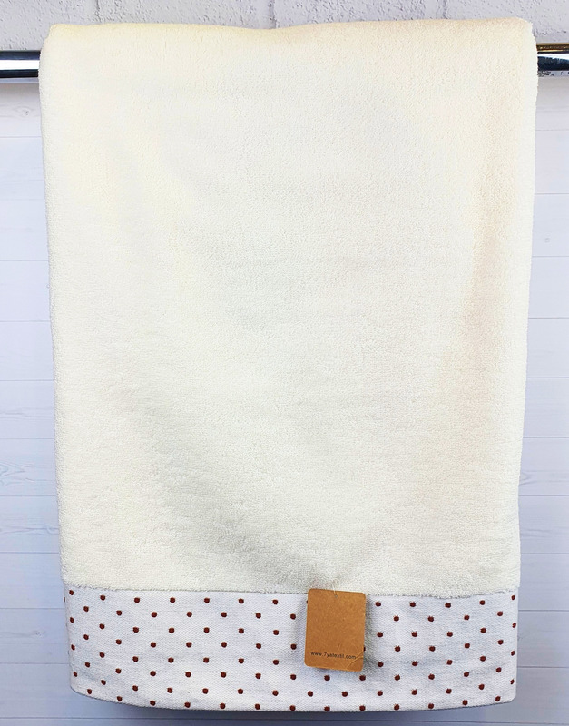 "Классические махровые однотонные полотенца для ванной, украшенные хлопковым бордюром в горошек.