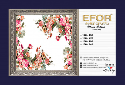 | Характеристики | Производитель: EFOR Цветочная коллекция Модель:EM35 V2 Состав: 100% полиэстер Размер: 160*180 Форма: прямоугольник Страна производитель: Турция Упаковка: ПВХ сумка |