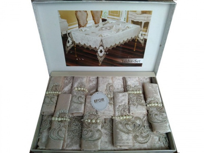 Скатерть EFOR YILDIZ 160x220 прямоугольная с 8 салфетками капучино SK-232/0124. Скатерть — отличный способ украсить любой интерьер.