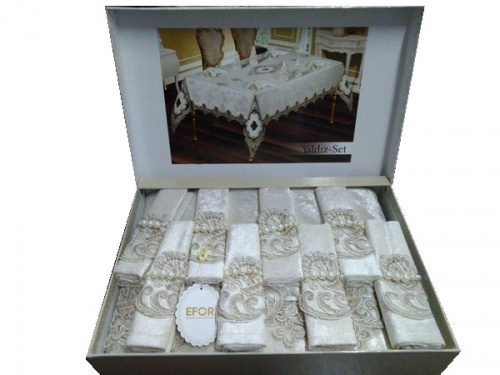 EforHome Скатерть EFOR YILDIZ 160x220 прямоугольная с 8 салфетками кремовый